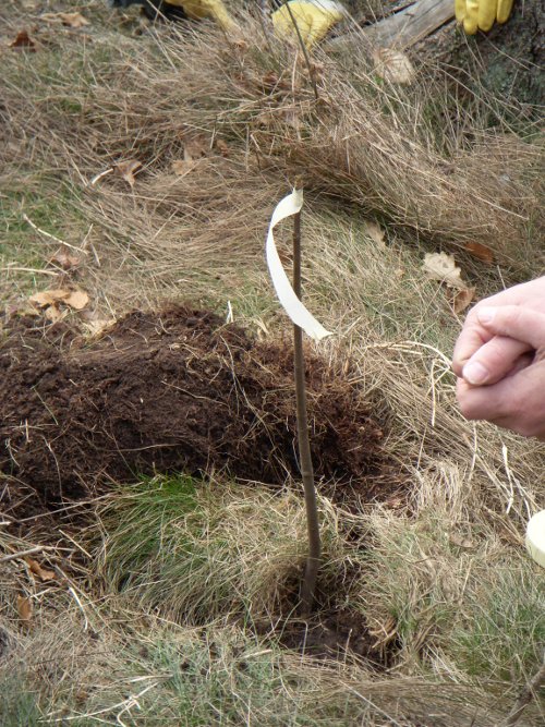AktivitätenIm Stadtwald Blieskastel herrscht ein hauptsächlicher Fichtenbestand. Damit aus der Mokultur ein Mischwald wird, pflanzen wir Buchen, die ursprüngliche Baumart in dieser Region. Außerdem pflanzeten wir noch Ahorn auf einer Freifläche in der Nähe des Waldes. Wir pflanzten nach dem „Klumpen-Prinzip“. Hierbei werden punktuell in einem Durchmesser von 5-7 m bis zu 40 Bäumen in einem sternförmigen Muster gesetzt. So können die Kleinstgruppen in befriedigender Dichte aufwachsen, was ökonomisch und ökologisch vorteilhaft ist. Danach haben wir unterhalb der Knospen abstehendes Malerkreppband zum Schutz vor Wildverbiss angebracht. |