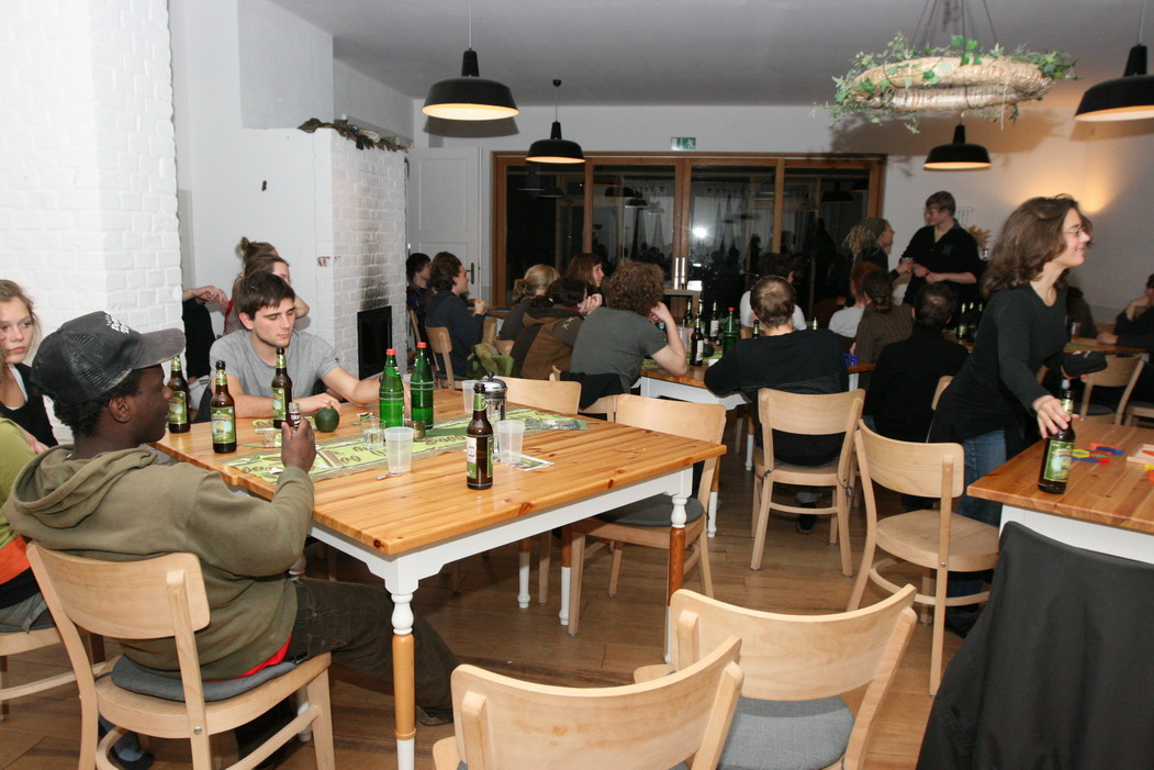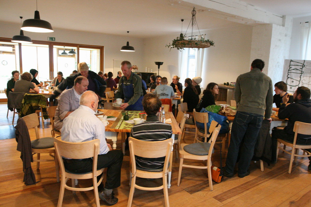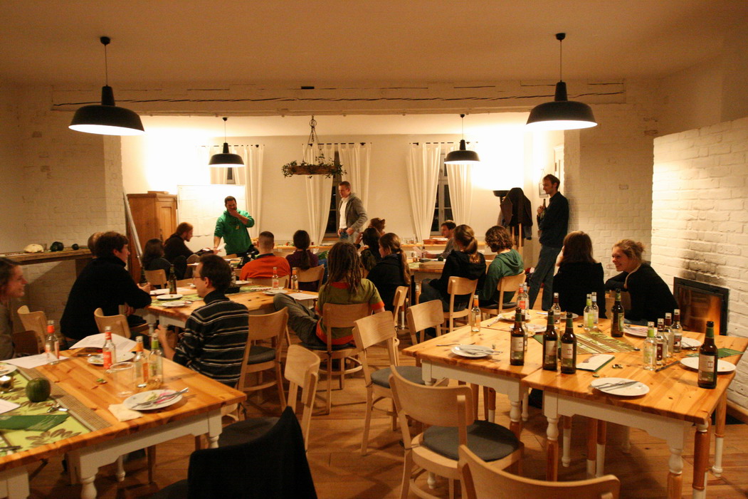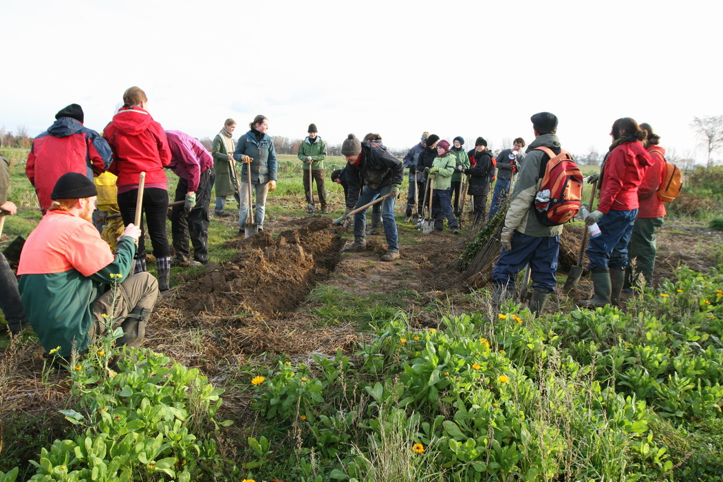 ZeitplanFr. 05.11.2010 Ankunft und Anmeldung der Teilnehmer ab 16 Uhr, Registrierung und Gutscheinvergabe, Unterbringung in 5 Gemeinschaftszimmern (max. 34 Betten)im Gutshaus, sanitäre Einrichtungen im Gutshaus vorhanden. 18.00 Uhr Abendbrot im Gutshaus mit Büfett (für alle angemeldeten Personen) 20.00 Uhr gemütliche Runde, Vorstellung des LandWert Hofes Hinweis: Um keinen falschen Eindruck zu erwecken: Gruppenraum mit Klavier & Kamin: das kommt nie wieder vor. Sebastian (vorne links) erklärte den Arbeitsablauf, Rick (vorne Mitte) informierte uns über LandWert Hof, ganz rechts auf dem Foto sorgte der Kamin für wärme, gemütliche Atmosphere Sa. 06.11.2010 8.00 Uhr Frühstücksbuffet im Gutshaus 9.00 Uhr Pflanzaktion (Maßnahme 1) 13.00 Uhr Mittagessen in hofeigener Gastronomie 14.00 Uhr Pflanzaktion (Maßnahme 1) 18.00 Uhr Abendessen im Gutshaus 19.00 Uhr Konzert & Musizieren im Kaminzimmer Stimmung beim Frühstück und kurz nach dem Konzert, danach ging's weiter bis halb eins. Es wurde geplaudert, geklimpert, gesungen und herzlich gelacht. So. 07.11.2010 8.00 Uhr Frühstücksbuffet im Gutshaus 9.00 Uhr Pflanzaktion (Maßnahme 2) 13.00 Uhr kleiner Imbiss an der Pflanzstelle 14.30 Uhr Mittagsessen mit warmem Buffet im Gutshaus Ab 16.00 Uhr Abreise mit Proviant Die Arbeitsmethode: einer kommandiert (Stefan), einer führt vor, wie es geht (Patrick), einer kontrolliert auf die Richtigkeit der Ausführung & des Ergebnisses (Martin), einer macht nach (Jan), der nächste holt Spaten (Ogg). Danach ab in die Pampa auf dem schön gelben, mächtigen Traktor. Ziel: Maßnahme 1 - Feldhecke: drei reihige Strauchhecke (Biotoptyp) entlang der Wiesen/Feldkante/Böschung zum Niedermoor-Grünland, 6 m breit auf 1245 m (27 Pflanzarten bilden die Mittelreihe) Maßnahme 2 - Schilffläche (westl. Stahlbrode, sog. Zigeunerhof): drei reihige Strauchhecke z.T. in Feuchtbereich zur Renaturierung ehemaliges Gülleteiches, 6 m breit einschließlich Krautsaum auf 876 m (22 Pflanzarten) |